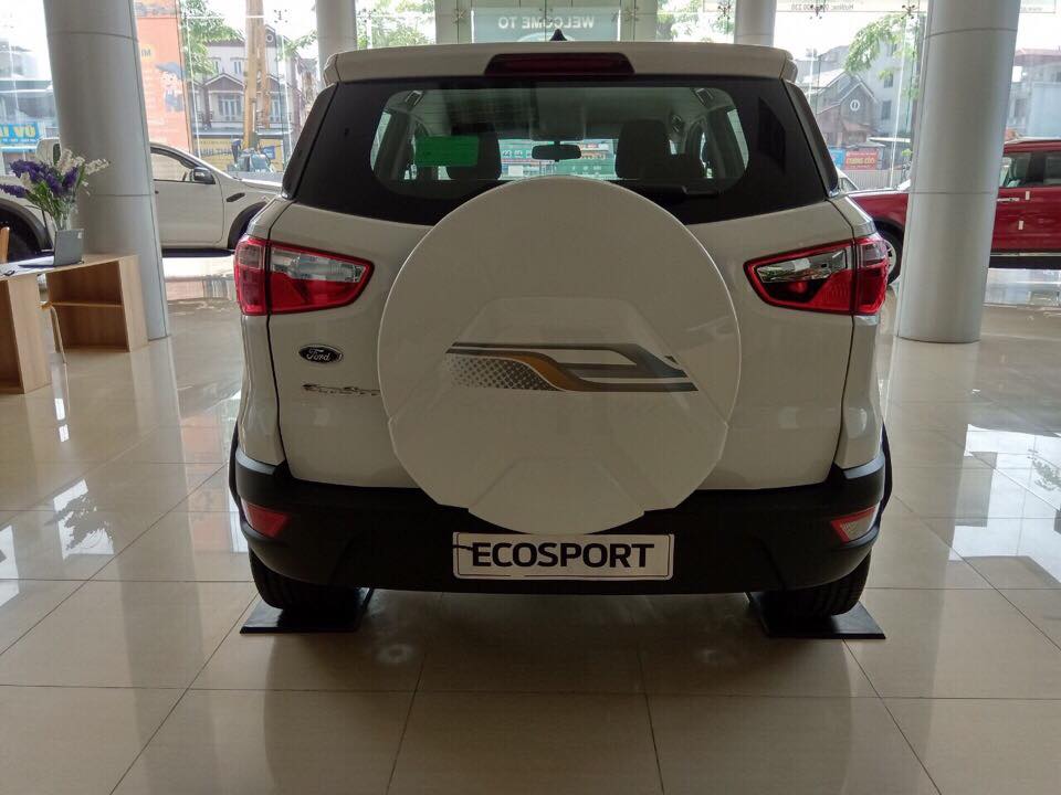 Ecosport 1.5L AT Titanium có cụm đèn hậu thiết kế hai tầng vuốt ngang từ hông và chụp ốp bánh dự phòng được làm mới với các đường nét cách điệu, dập nổi tên dòng xe. Bên cạnh đó, phần đuôi xe còn có thêm gạt mưa kính sau đèn báo phanh trên cao giúp tăng cường cảnh báo khoảng cách an toàn.