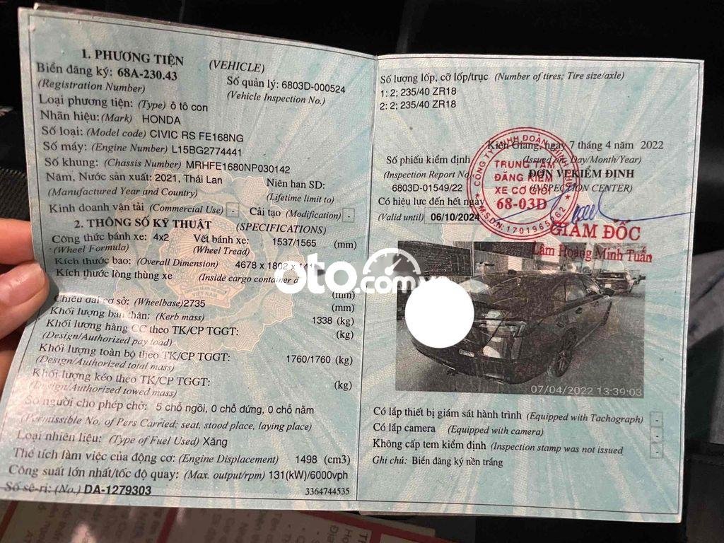 Honda civic RS 2021,1 đời chủ