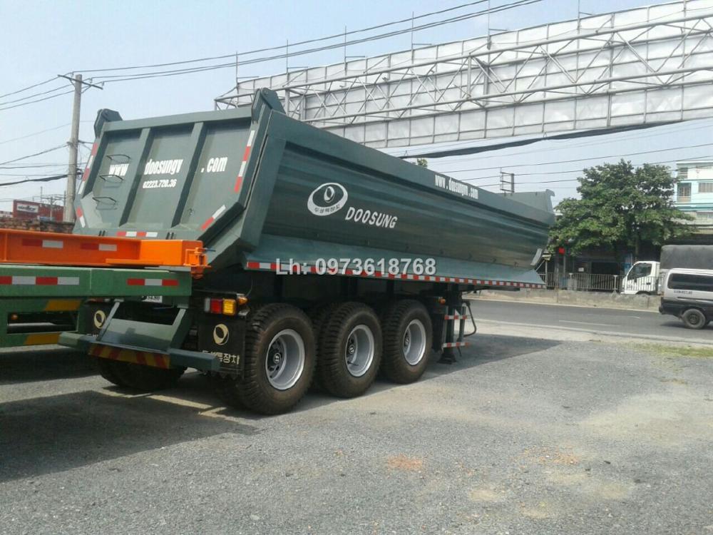 Bán Sơ mi Rơ mooc Ben chân rút 3 trục 25 khối, tải 29 tấn Doosung Hàn Quốc. Giao ngay.