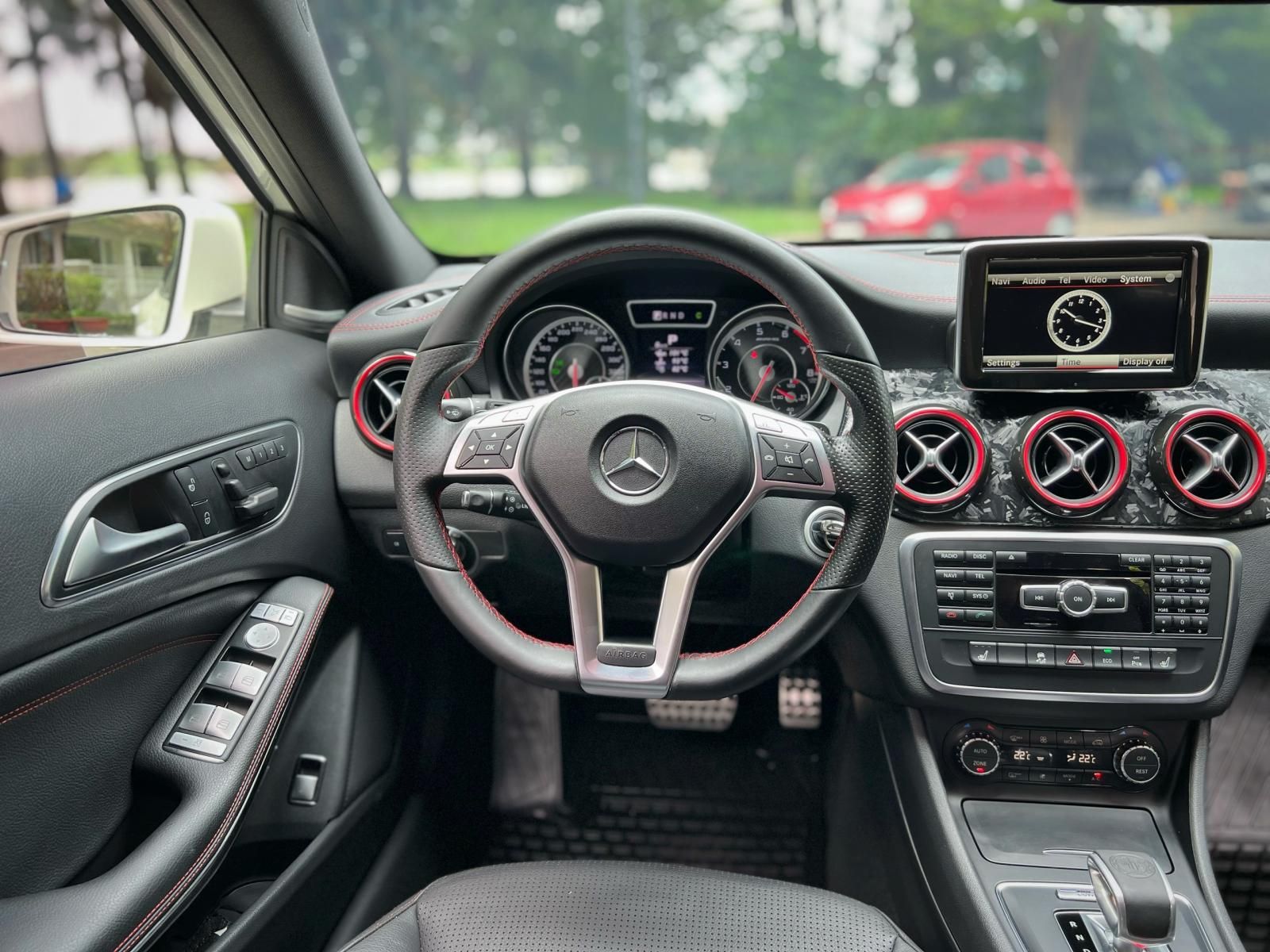Vô lăng thể thao, viền chỉ đỏ kết hợp lẫy chuyển số.