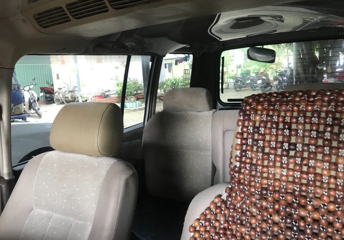 Ghế nỉ, hàng ghế thứ 3 chưa ngồi nên còn rất mới.