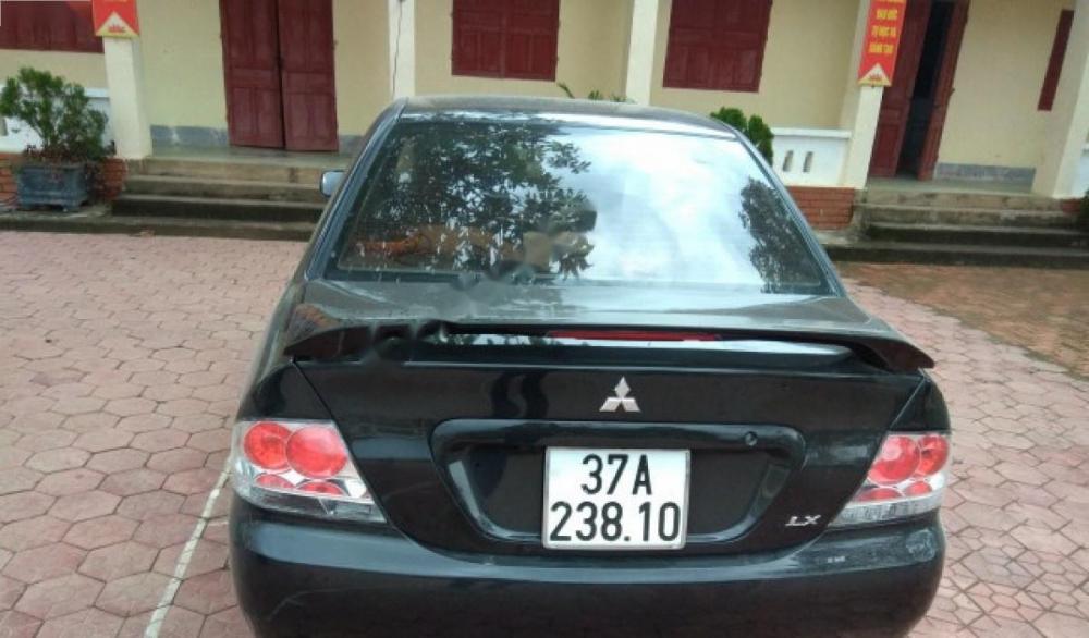 Xe Mitsubishi Lancer màu đen, đời 2003. Xe trang bị: Số tự động, điều hòa, đài AM/FM, radio, mâm đúc.