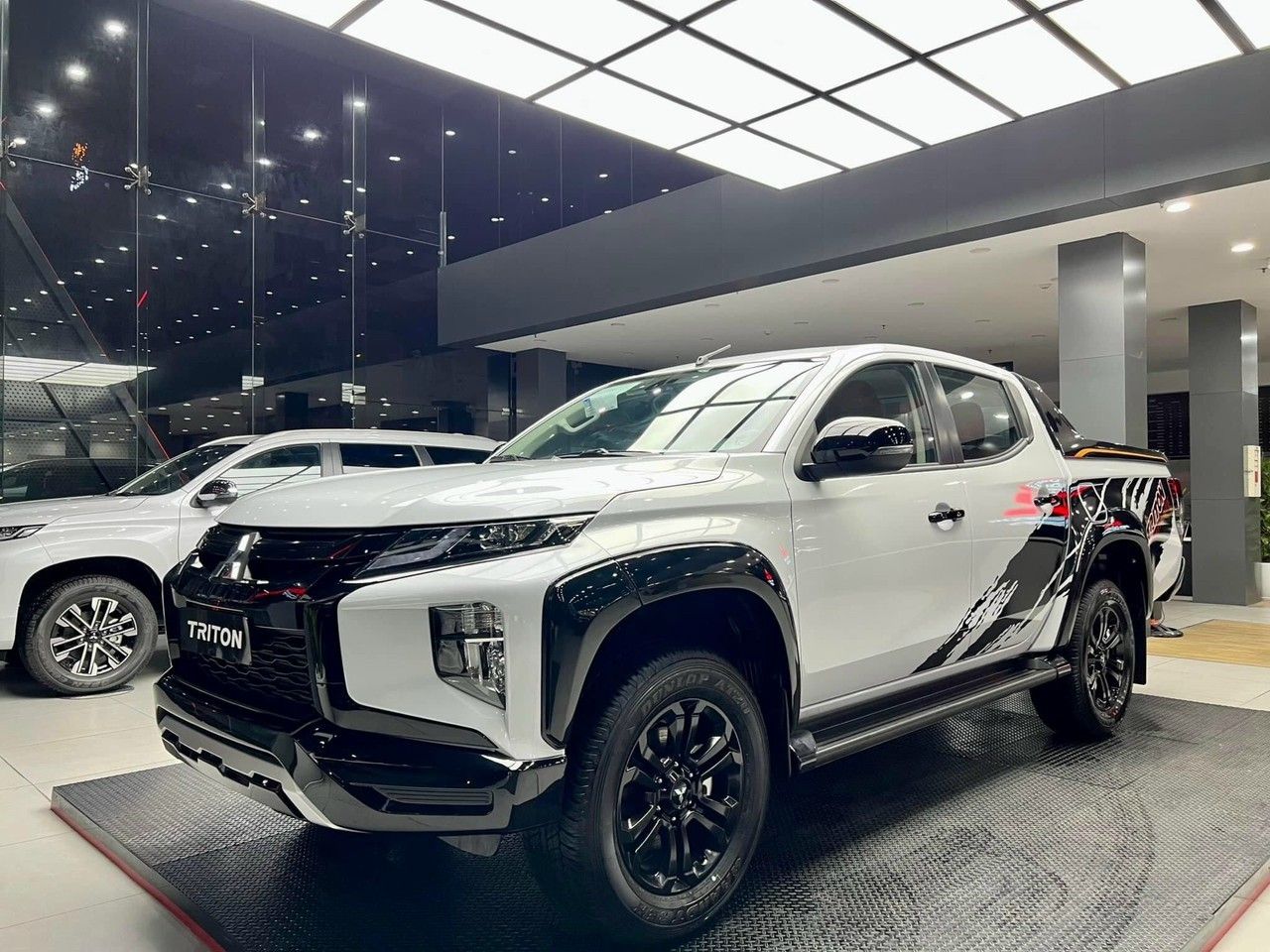 - Ngoại thất thể thao với sắc đen mạnh mẽ, nổi bật từ xa: Lưới tản nhiệt, cản trước, thanh trang trí cho thùng xe & đặc biệt là mẫu tem xe “Triton Athlete” chính hãng được thiết kế riêng.