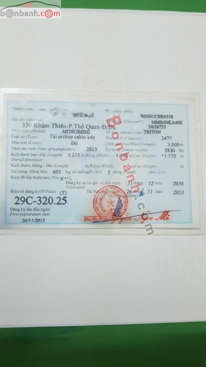 Thông tin Mitsubishi Triton GLX 4x2 MT 2013 - Bán Mitsubishi Triton GLX 4x2 MT đời 2013, màu đỏ, xe nhập. số sàn