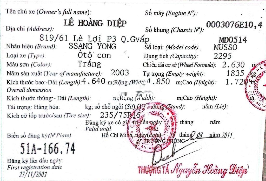 Musso đời 2003 máy xăng, xe gia đình đang sử dụng, đã đổi xe 4 chỗ không có chỗ để cần bán cho rộng chỗ, cảm ơn và Anh Chị đã quan tâm, Phúc ***.... Cảm ơn quý khách đã xem tin!